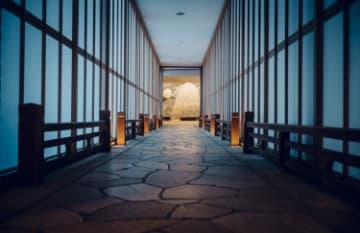 "Kai Tsugaru" es una posada de aguas termales ubicada en el santuario interior de Hirosaki. Relájese en habitaciones decoradas con bordados Tsugaru Kogin y disfrute de la cocina kaiseki de atún Oma, el paisaje de las cuatro estaciones y la cultura.