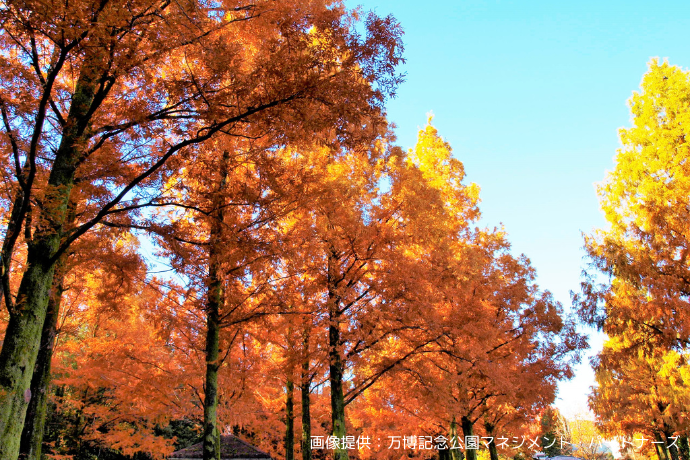 園内を散策したり、森の空中観察路ソラードから森を見渡したりなど、錦秋の万博記念公園を心ゆくまでご堪能ください。