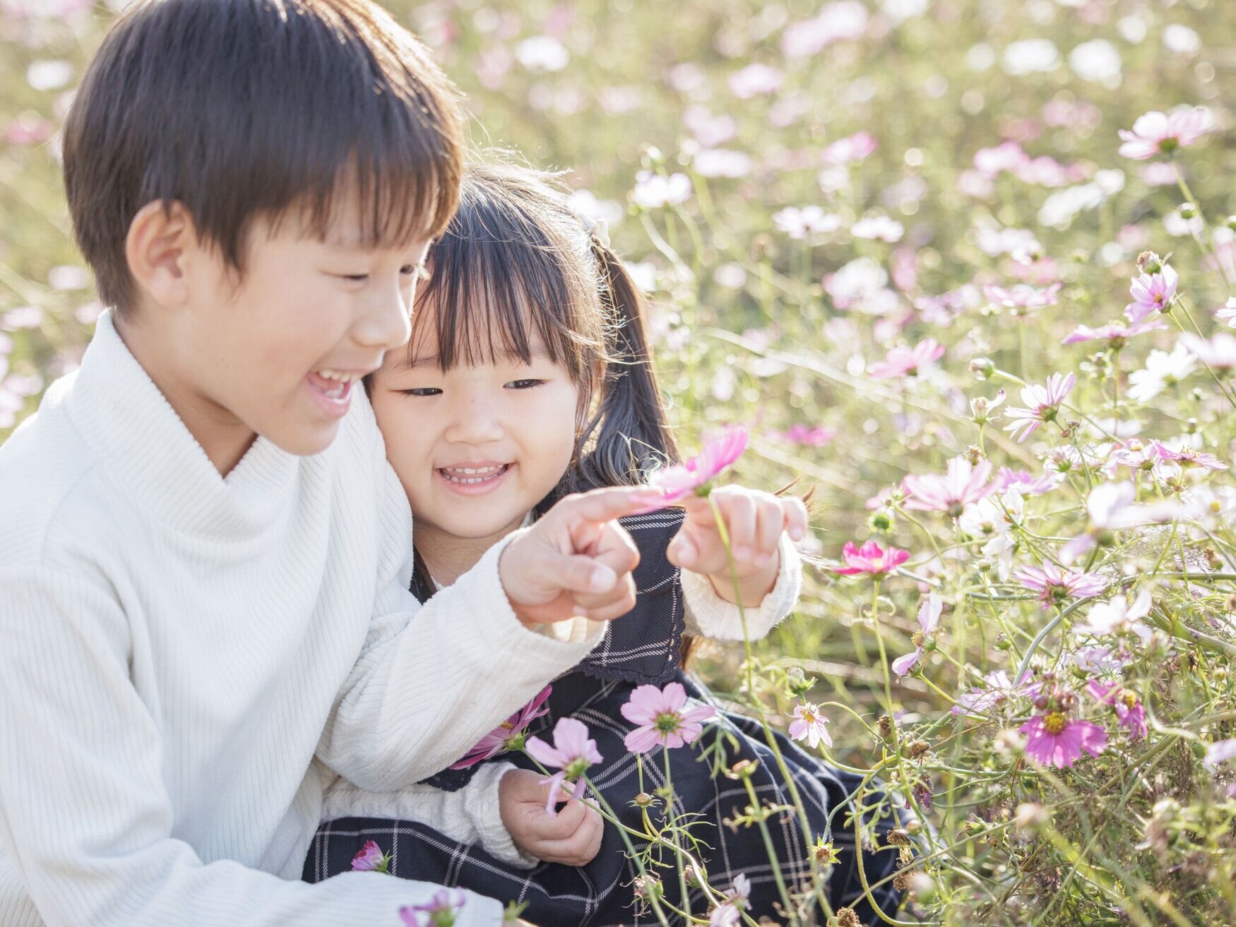 傾斜のある地形を活かせば、まるで一面コスモスに包まれているような写真も撮影できます。