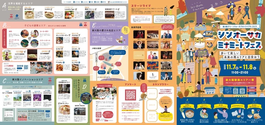 本協議会は、取組の一環として、新大阪駅南口エリア一帯で『シンオーサカ・ミナミ―トフェス -歩いて楽しい未来の南口と出会おう-』を11月7日(金)、8日(土)に実施いたします。