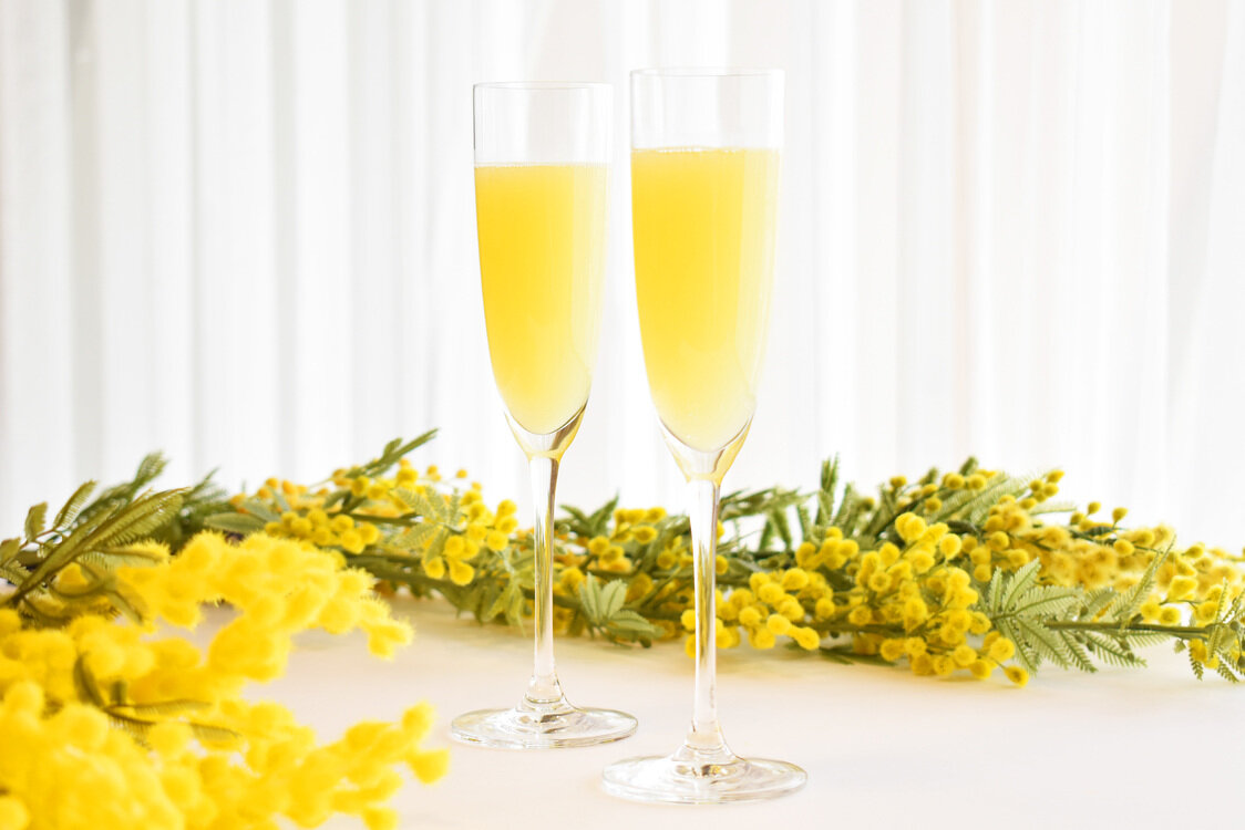 黄色いミモザの花が咲き誇る様子にちなみ、名付けられたミモザカクテルはオレンジジュースとスパークリングワインを1:1の割合で割った爽やかなカクテルです。