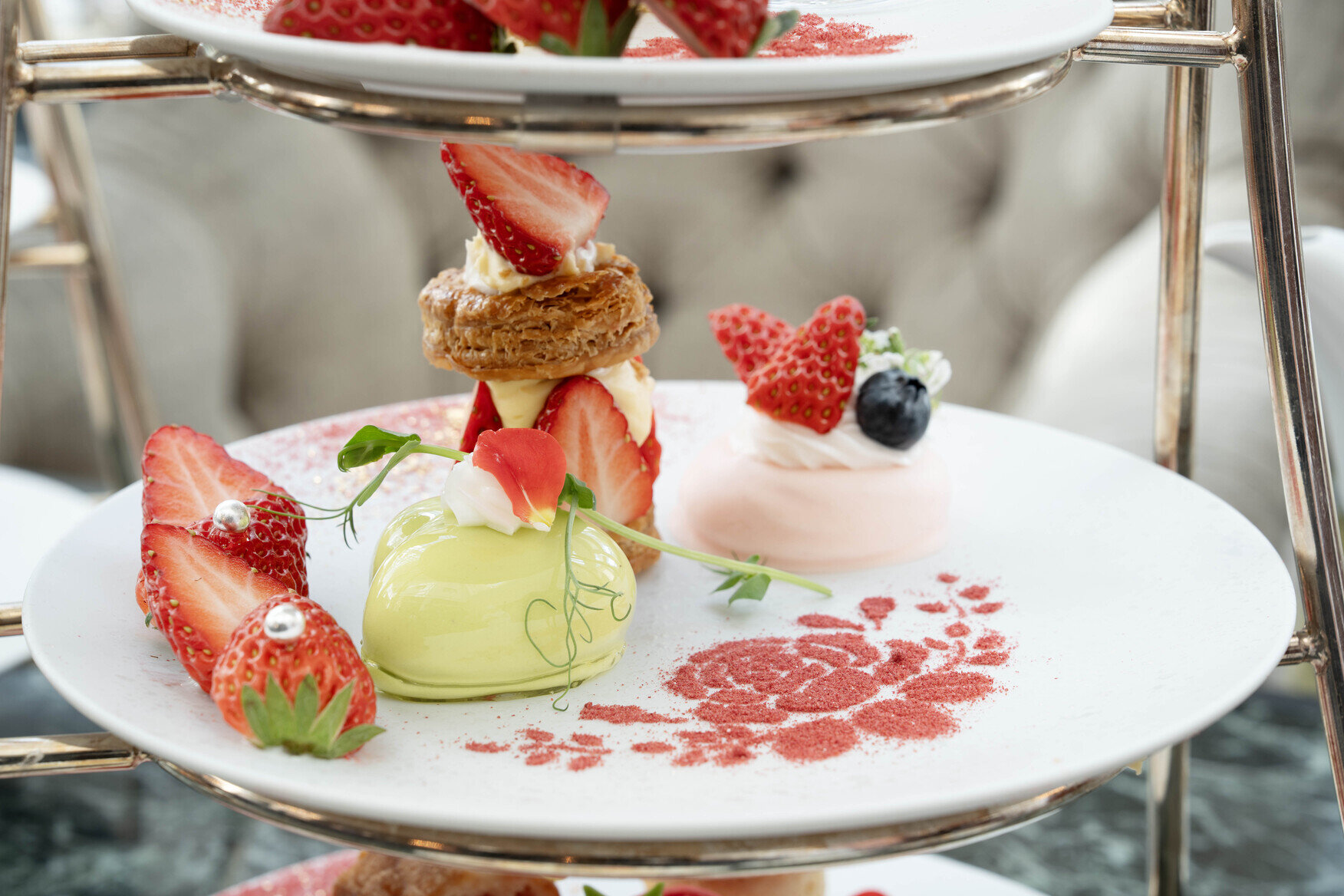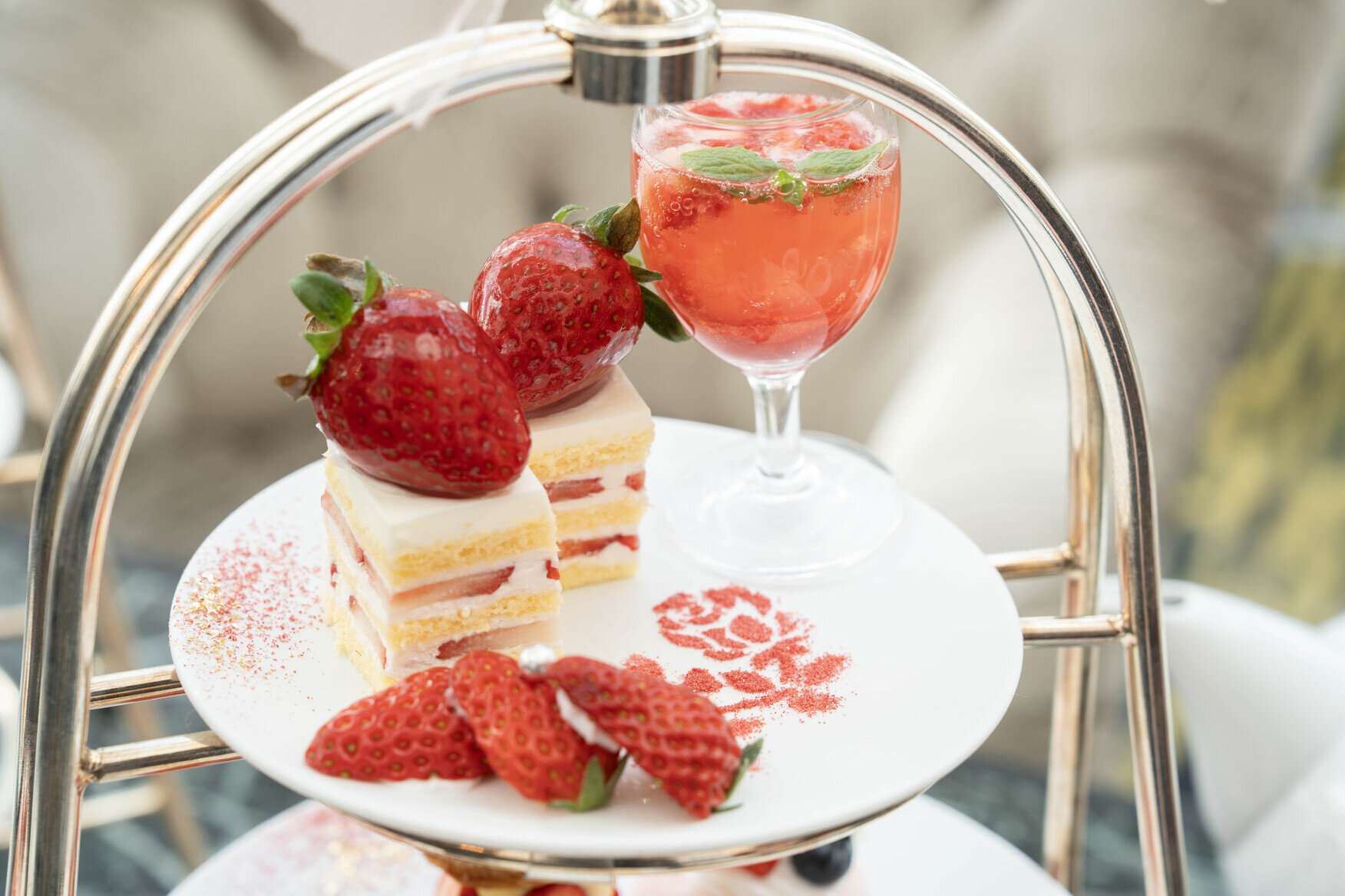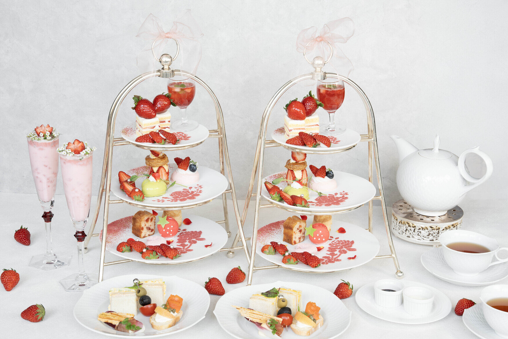 ロビーラウンジでは、旬のいちごの魅力をダイレクトに味わえる「ストロベリーアフタヌーンティー」を、