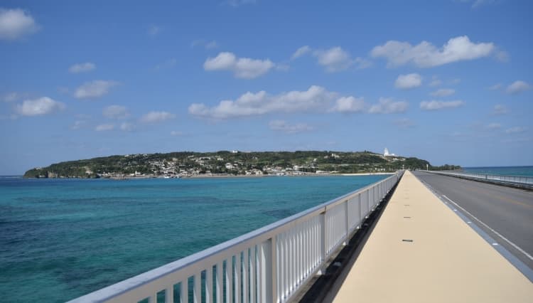エメラルドグリーンのグラデーションが美しい珊瑚礁の海に、真っ直ぐに伸びた橋。今帰仁村の古宇利島と名護市の屋我地島を結ぶ離島架橋「古宇利大橋」は、両側に広がる海を楽しみながらドライブできるスポットです。