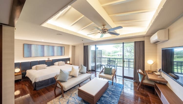 珊瑚の群生が広がり、多様な生物が生息している楽園のような海に臨む「オクマ プライベートビーチ & リゾート」。沖縄でも珍しい人の手が入っていない天然の白砂とエメラルドグリーンに輝く海を眺めながら、ゆったりとした時間を過ごせます。日が落ち、オレンジ色から淡いピンク色、深い紫色へと変化していく海をシャンパン片手に眺める、スペシャルな体験を味わって。