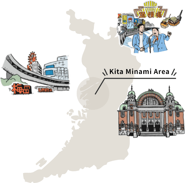 Roughly a 5-minute walk from exit 1 of Yodoyabashi Station on the Keihan Railway and Osaka Metro Midosuji Line