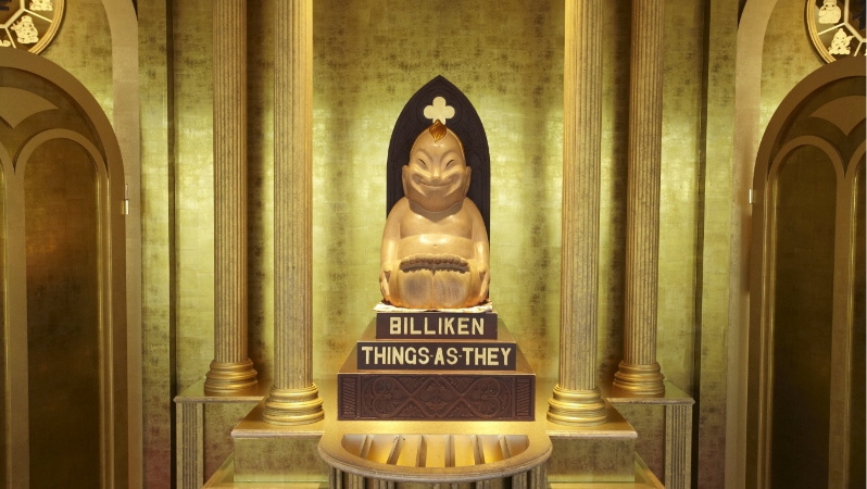 he became known even in Japan, and found his way to enshrinement in Shinsekai as a piece of fashionable American kitsch. Billiken personifies the true spirit of Shinsekai: a place