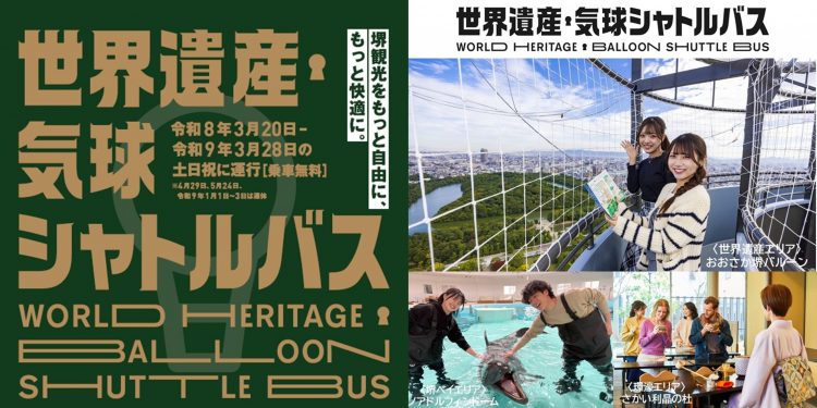 2026年3月20日(金・祝)より、世界遺産・百舌鳥古墳群が一望できるガス気球のある大仙公園、千利休や与謝野晶子の展示があるさかい利晶の杜、夕日の名所堺旧港を気軽に周遊できます!