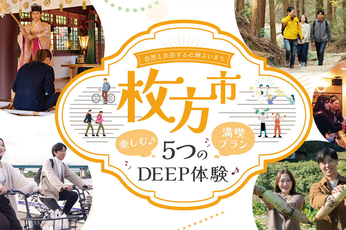 枚方市で楽しむ5つのDEEP体験大阪府北東部に位置する枚方市。 サイクリングやハイキングなど豊かな自然を満喫するプランに加え、里山での収穫体験や、古代の歴史が息づく百済寺跡を巡る特別…