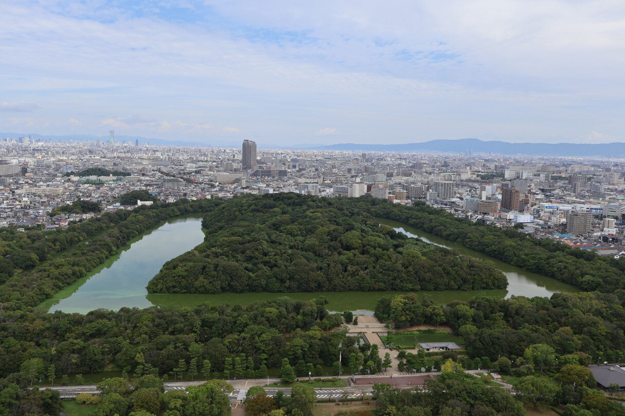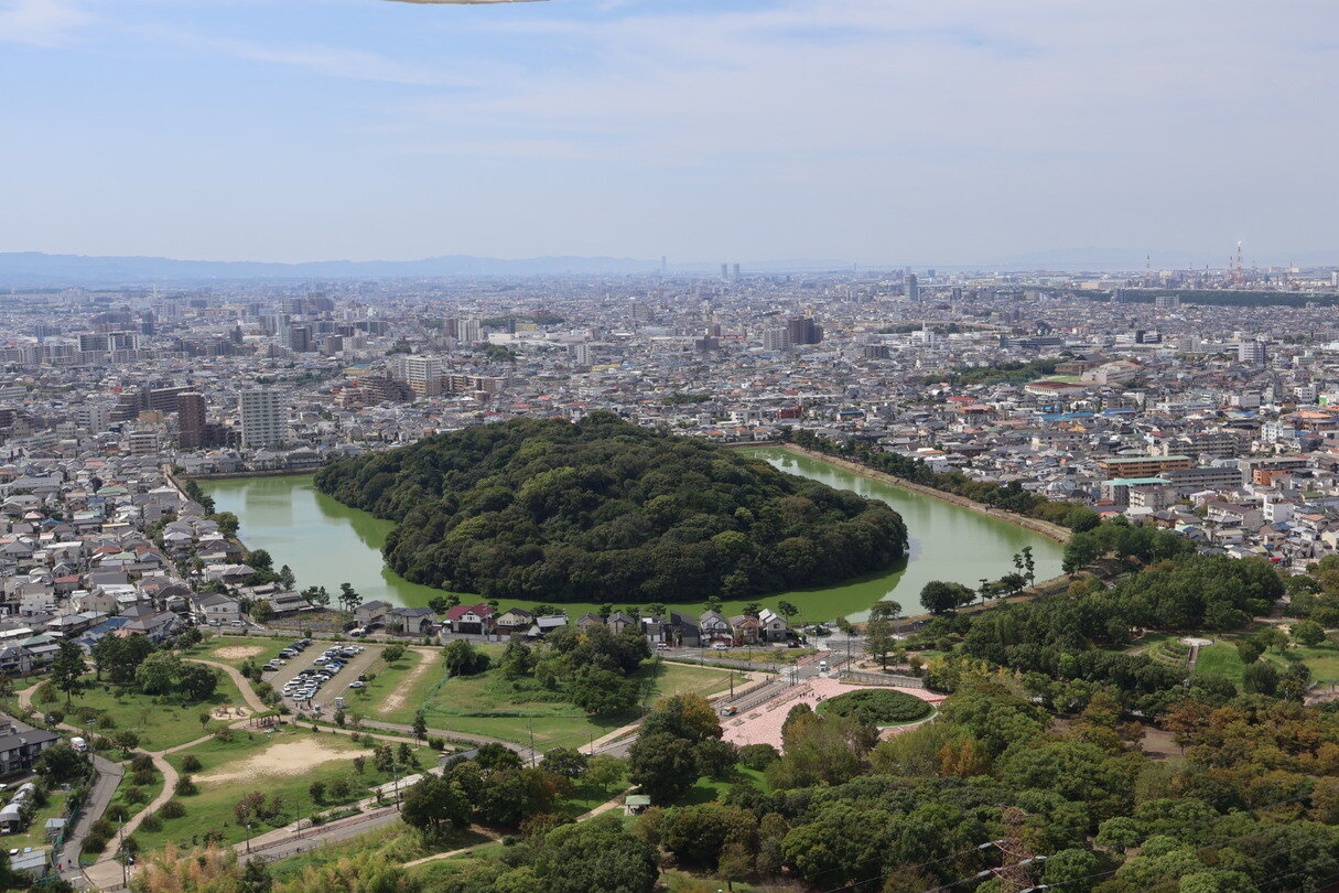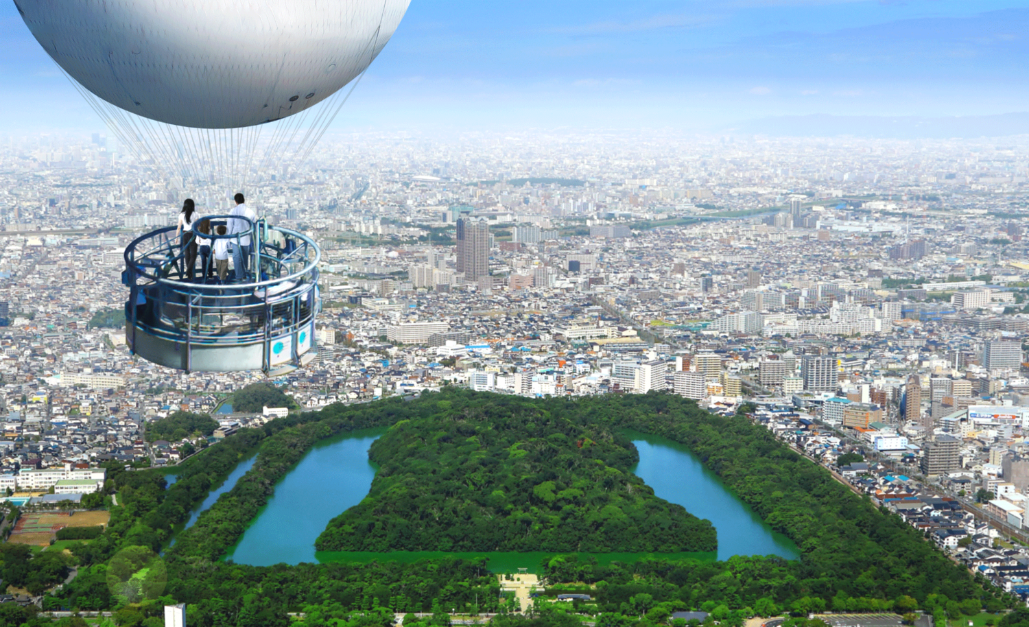 上空約100mから仁徳天皇陵古墳をはじめする大阪府唯一の世界遺産 百舌鳥古墳群や堺の街並みを眺望していただけます。