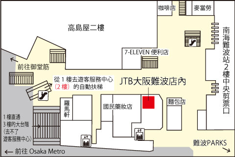 〒 542-0076 大阪市中央区難波5-1-60 南海なんば駅1階北口前
