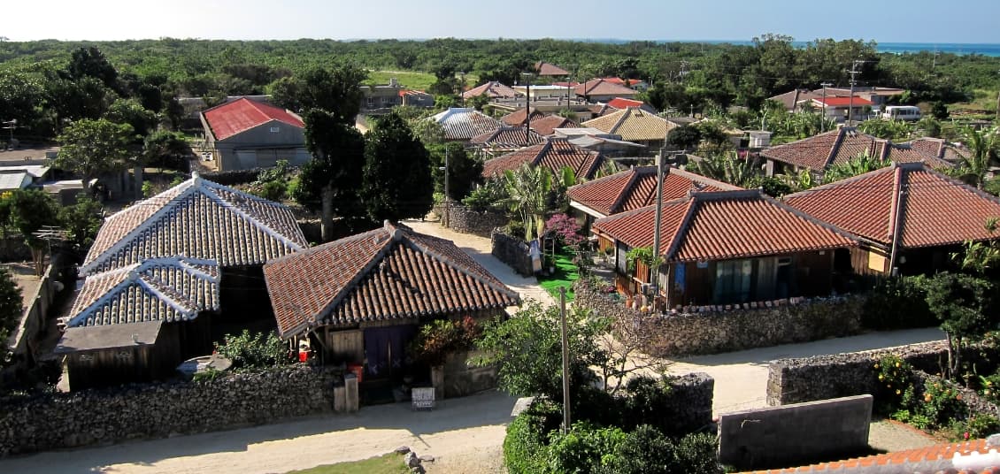 紅瓦的房屋排列和白沙道路延續的竹富島的村落。大衹位於島的中央部,至今還保留著紅瓦的琉球古民宅和屋頂上的獅像、珊瑚石牆等沖繩特色的街道。悠閒地享受一如往昔的島嶼景觀。