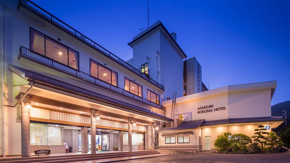 足摺岬にほど近く、館内の至る所で海の景色と星空を楽しむことができるホテル。