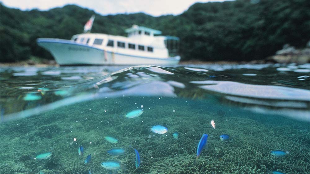 日本最大級のシコロサンゴの群集地でもある竜串海域公園。刻々と変化する美しい海中風景を船底ガラスから鑑賞ください。