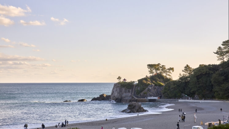 国定公園に指定されている景勝地。海岸沿いには奇岩が乱立し、弘法大師空海が修行したとされるパワースポットも点在。