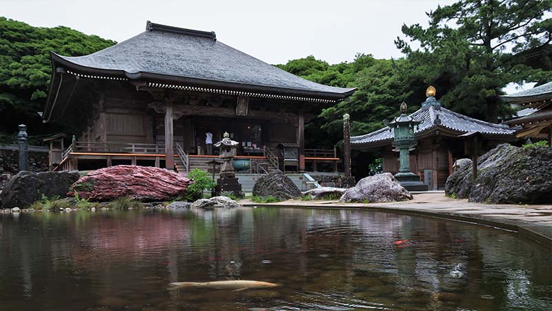 四国遍路の第38番札所。足摺岬を見下ろす丘の中腹にあり、多くの文化財が伝えられる。