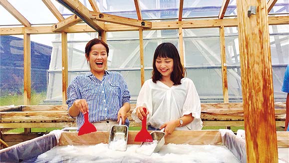 海のすぐそばに建つ、日本でも数少ない完全天日塩づくりの体験施設。できた塩はお土産として持ち帰ることができる。
