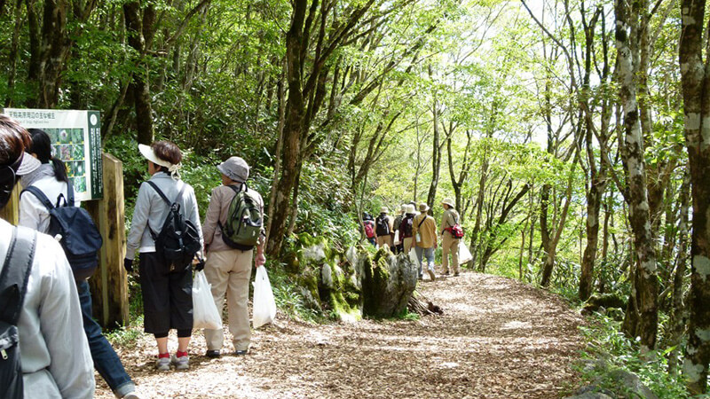 四国カルストの東部に広がる標高1400mの天狗高原。その最高地点にある「天狗の森」に向けて日帰り登山に挑戦できる。