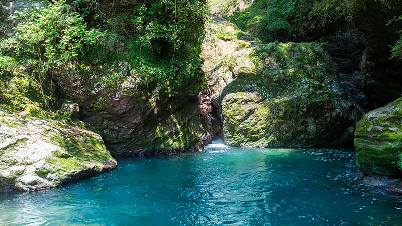 大阪から飛行機で45分の高知。圧倒的な水質を誇る「奇跡の清流仁淀川」や「四国カルスト高原」、透明度抜群の竜串海岸など自然美が広がります。移動中も絶景を楽しみながら、魅力的なアクティビティを満喫できます。