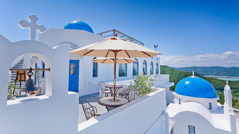 エーゲ海に浮かぶサントリーニ島をイメージしたリゾートホテル。