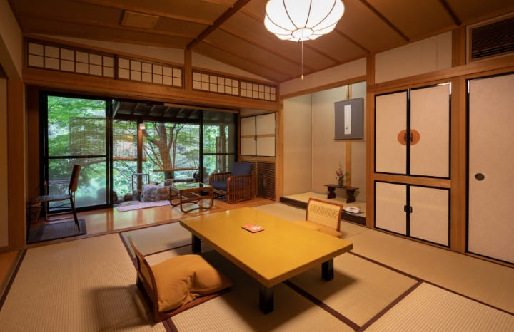 山荘天水は、天ケ瀬温泉近くの静かな場所にある旅館です。