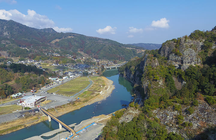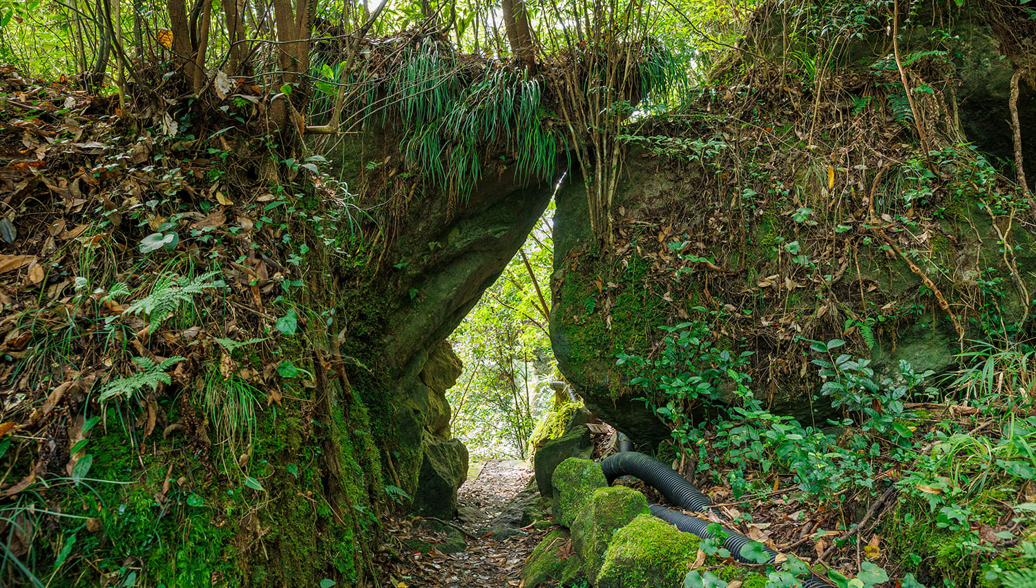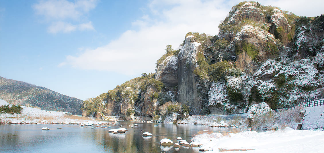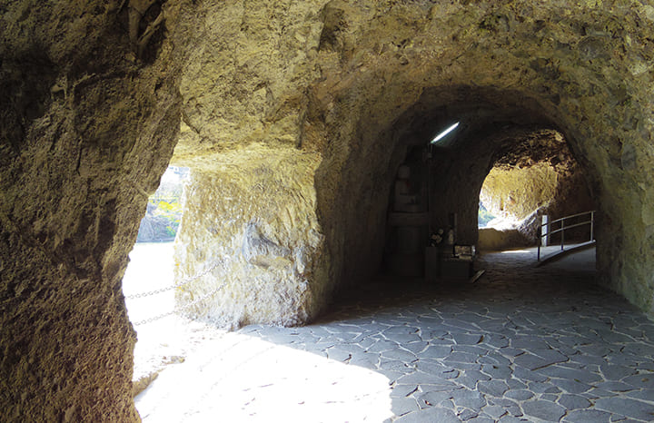 日本三大奇勝に数えられ、登山道も整備されています。青の洞門は禅海和尚がノミと鎚だけで掘ったトンネルで、歩道からは当時のノミの跡が確認できます。
