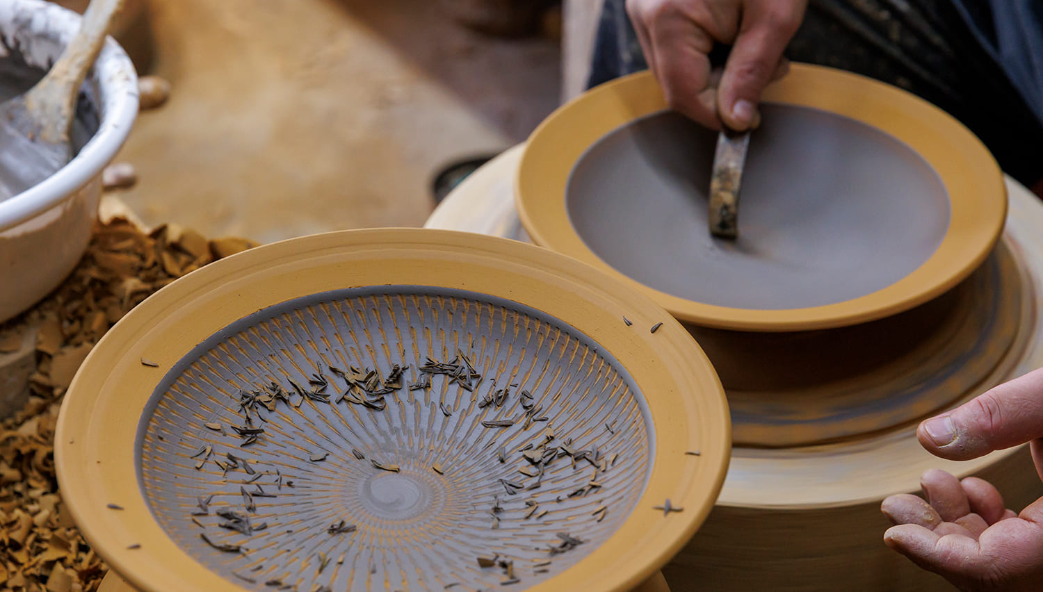 大分県日田市最北端に位置し、300年の歴史を持つ「小鹿田焼」の窯元と石積みの棚田が広がる、重要文化的景観に選定された地域です。
