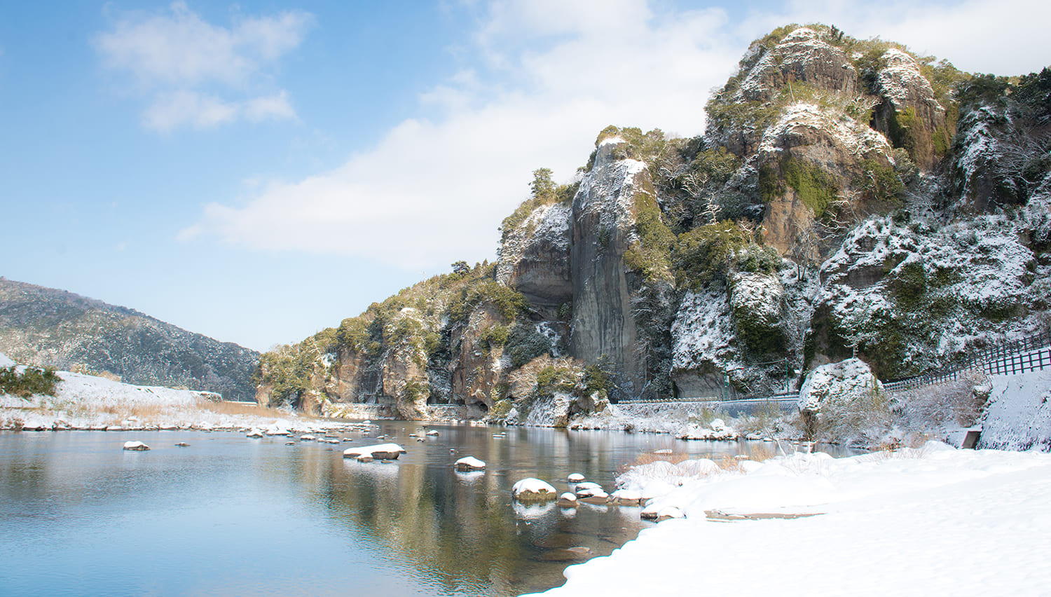 競秀峰は、一の峰や二の峰、恵比須岩などが連なる耶馬溪の名勝です。
