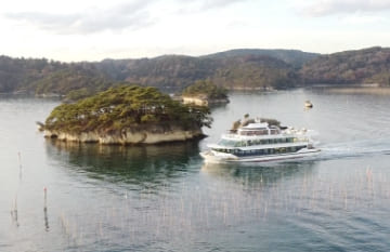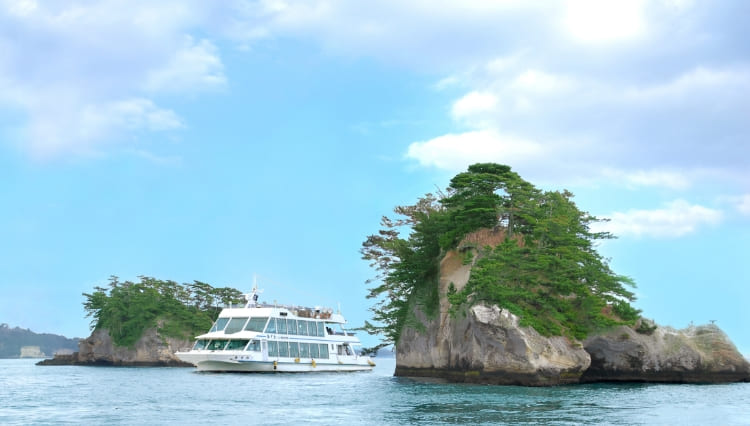 陸からの眺めとは違った、眼前に迫る島々を楽しむことができる遊覧船。丸文松島汽船の「政宗コース」では、松島のシンボル、波の浸蝕によって出来た奇怪な様相の「仁王島」はもちろん、戦国武将の武具に似ている「鎧島」や「兜島」など、珍しい島々を巡ることが可能。