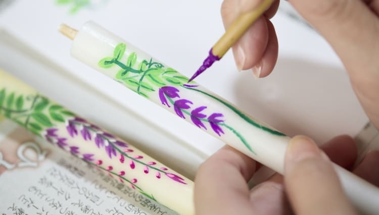安永元(1772)年創業。朝顔、菖蒲、ひなげしなど、花をモチーフにした色鮮やかな「会津絵ろうそく」に出会えるお店。藩政時代から描かれていた伝統的な菊やぼたん柄のろうそくも販売しています。