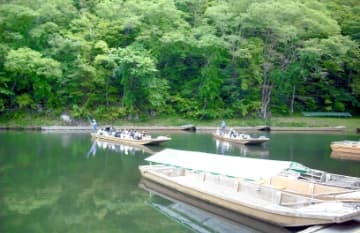 砂鉄川の両側にそびえる高さ100mの岩壁と狭間に見える木々の美しさは圧巻。冬は「こたつ舟」もあり。
