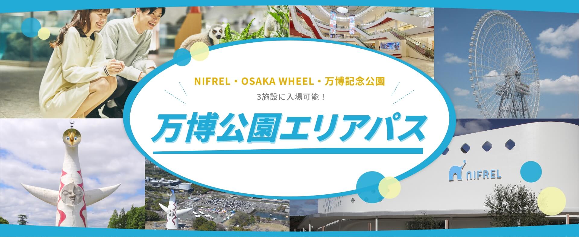 NIFREL、OSAKA WHEEL(日本一の大観覧車)、自然文化園・日本庭園(万博記念公園)の3施設に入場できる1日券です。